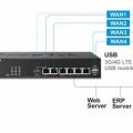 - 1 cổng Gigabit Ethenet LAN RJ-45, 1 cổng DMZ RJ-45 , 2 cổng USB cho phép kết nối USB 3G/4G (cổng 1), Printer...